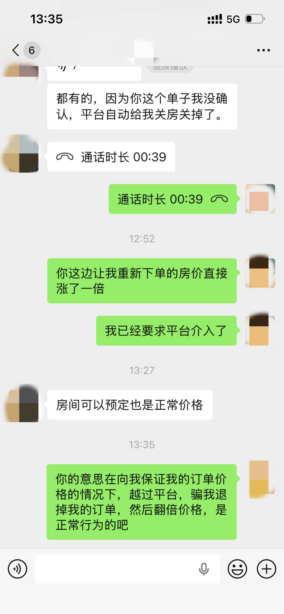 黑龙江的小冰同样遇到预订酒店被单方面退单的情况。她早已下单的大连市五一期间的酒店,被商家直接退房处理,而她点开页面发现,该房源取消后立刻加价重新挂出。“既然不想让人订,为什么当初要上架?”